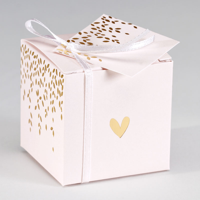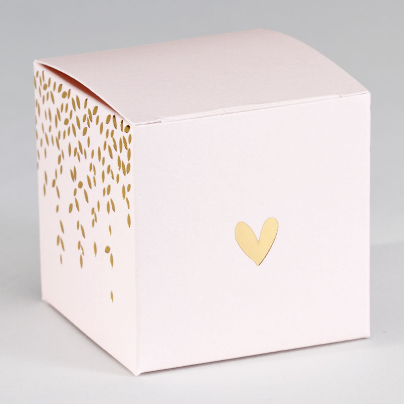 Boîte cube rose pâle et feuillage en dorure (719.001)