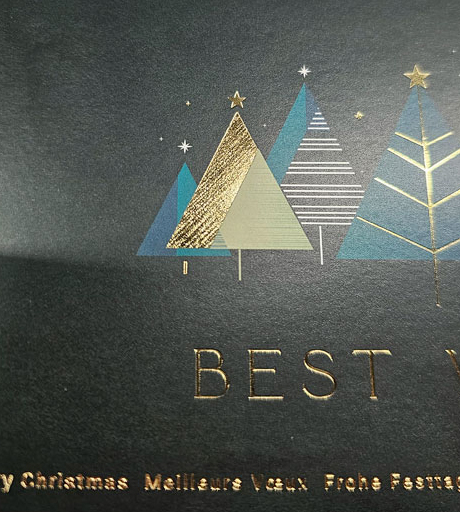 Description:Un sapin stylisé au design géométrique, mis en valeur par des détails en dorure sur fond vert profond. Le message "Meilleurs vœux" décliné en plusieurs langues souligne votre ouverture à l’international. Une carte raffinée pour remercier vos clients et partenaires avec modernité.