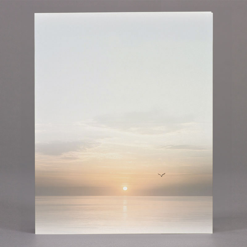Dubbele rouwbrief vogel bij zonsondergang boven water (631.180)