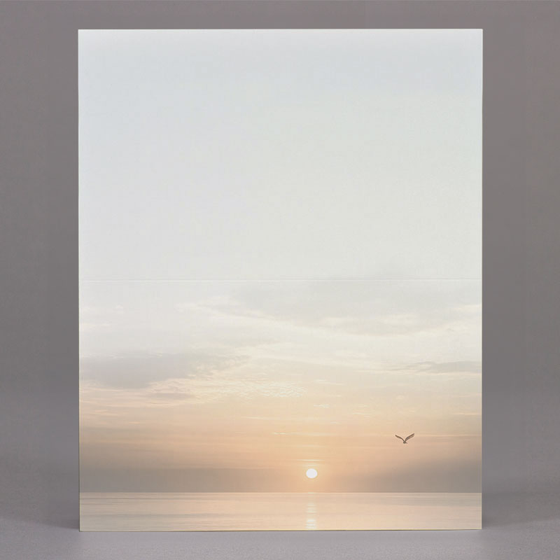Enkele rouwbrief vogel bij zonsondergang boven water (620.180)