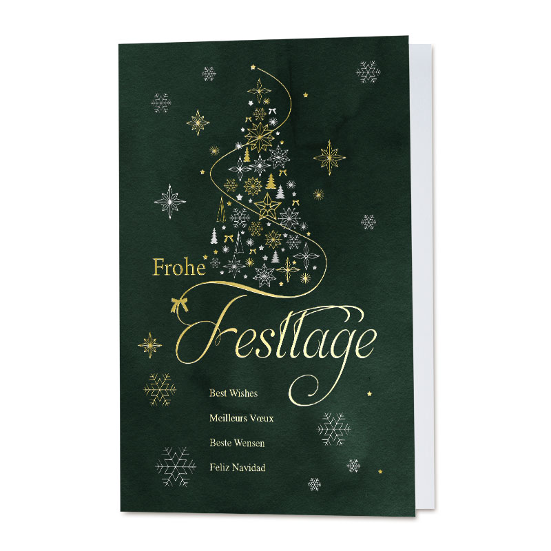 Grüne Firmen Weihnachtskarte mit Tannenbaum | Silber- und Goldfolie (865.001)