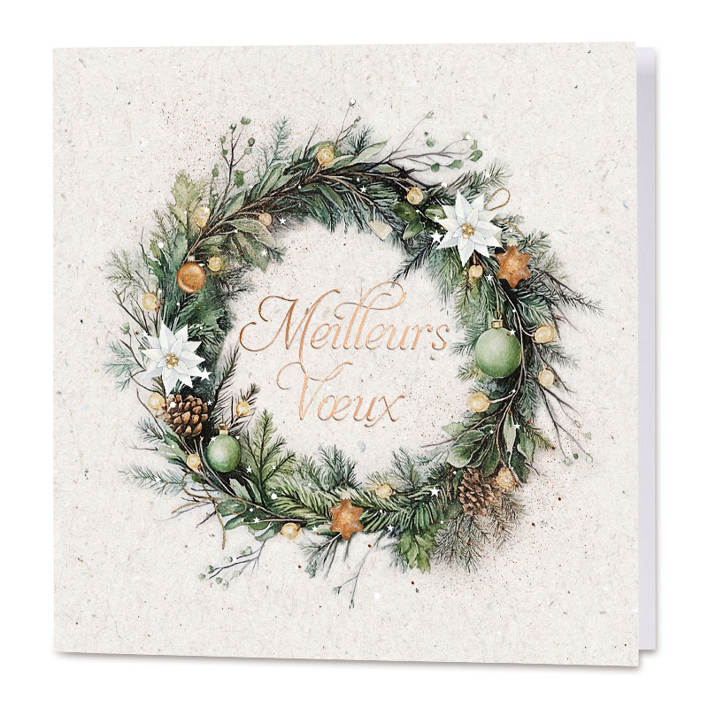 Carte de vœux entreprise couronne hivernale et dorure (845.185)