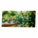 Moderne nieuwjaarskaart met een krachtige groene boodschap: een hand die een glazen bol met daarin een boompje vasthoudt, symbool voor duurzaamheid en samenwerking. De tekst ‘Building a Green Future Together’ benadrukt een milieubewuste en positieve toekomstvisie. Spotvernis zorgen voor wat special effects op de boom en de glazen wereldbol.
