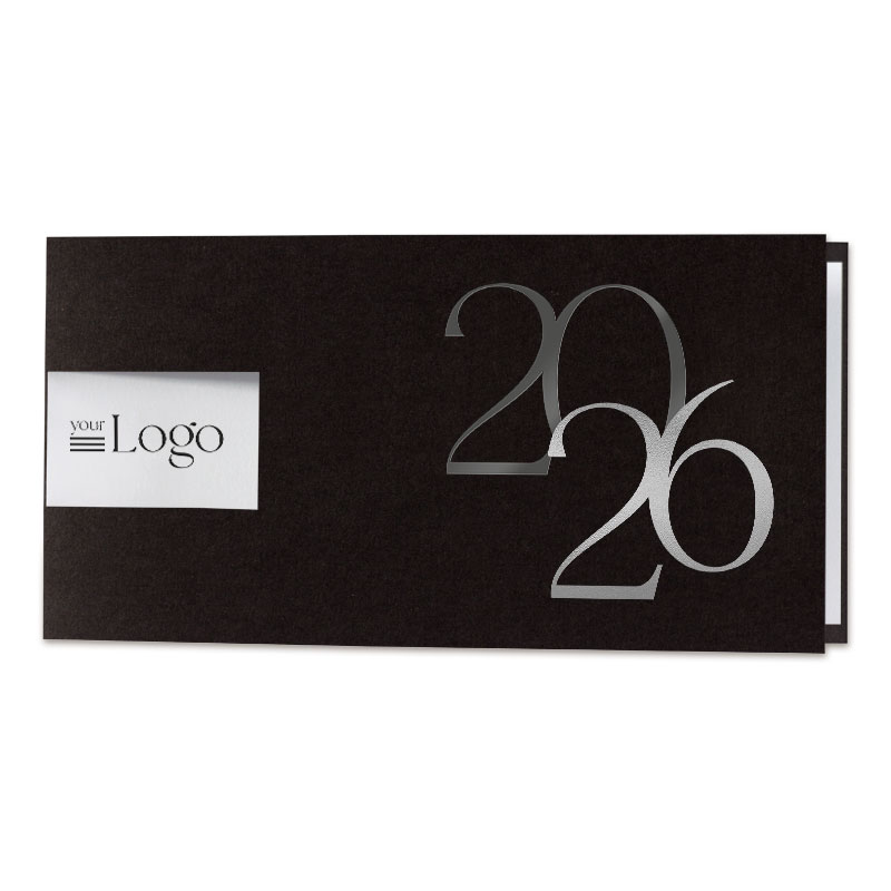 Zwarte trendy kaart met logo uitkap en 2026 in zwarte folie en zilverfolie (845.004)